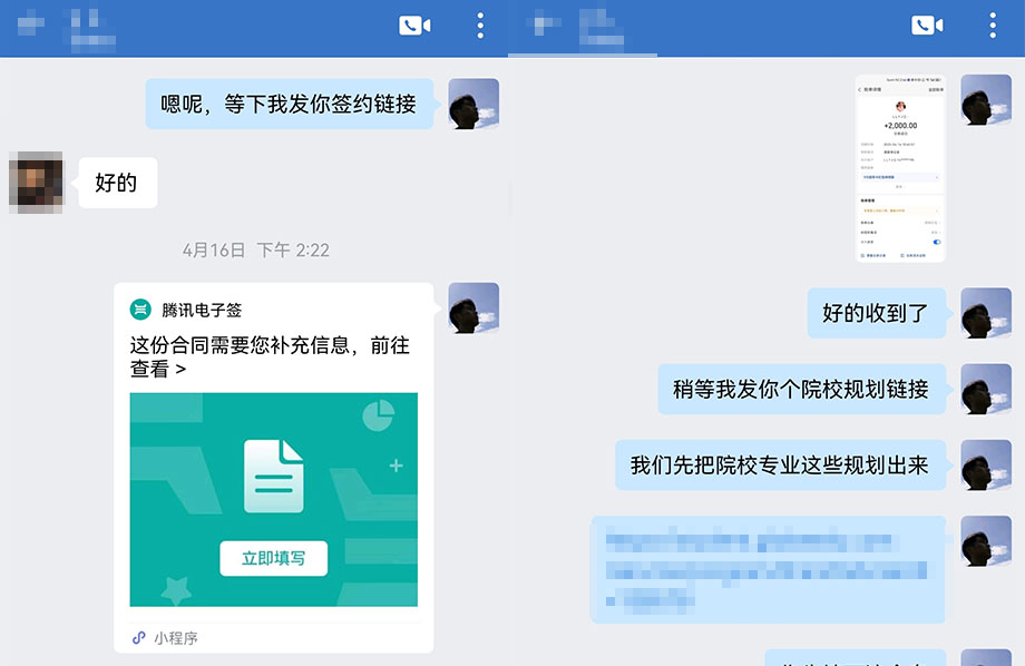 张同学确认委托我们进行申请,并完成第三方实名认证电子签约。星阑团队开始规划其申请的院校及专业方向。