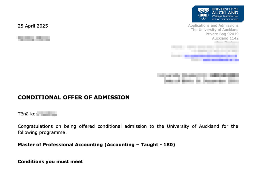 正式拿到奥克兰大学Master of Professional Accounting的条件offer。