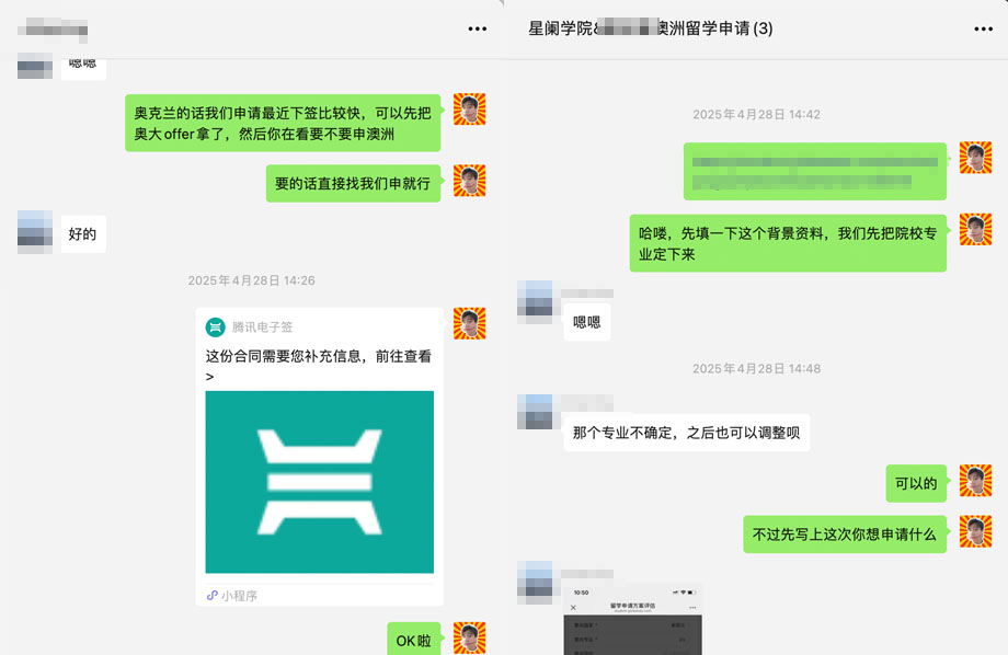 董同学确认委托我们进行申请,并完成第三方实名认证电子签约。星阑团队开始规划其申请的院校及专业方向。