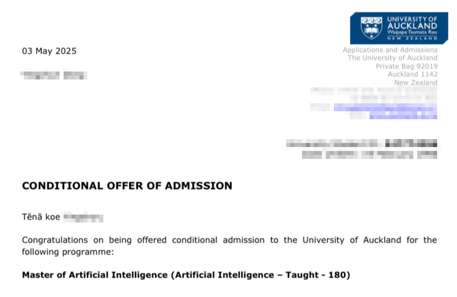 正式拿到奥克兰大学Master of Information Technology的条件offer。
