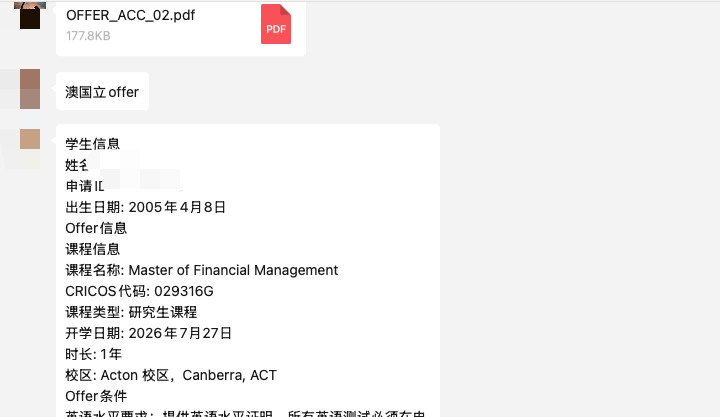 在与彭同学沟通确认后,我们协助学生选定目标院校并开始准备递交申请材料。